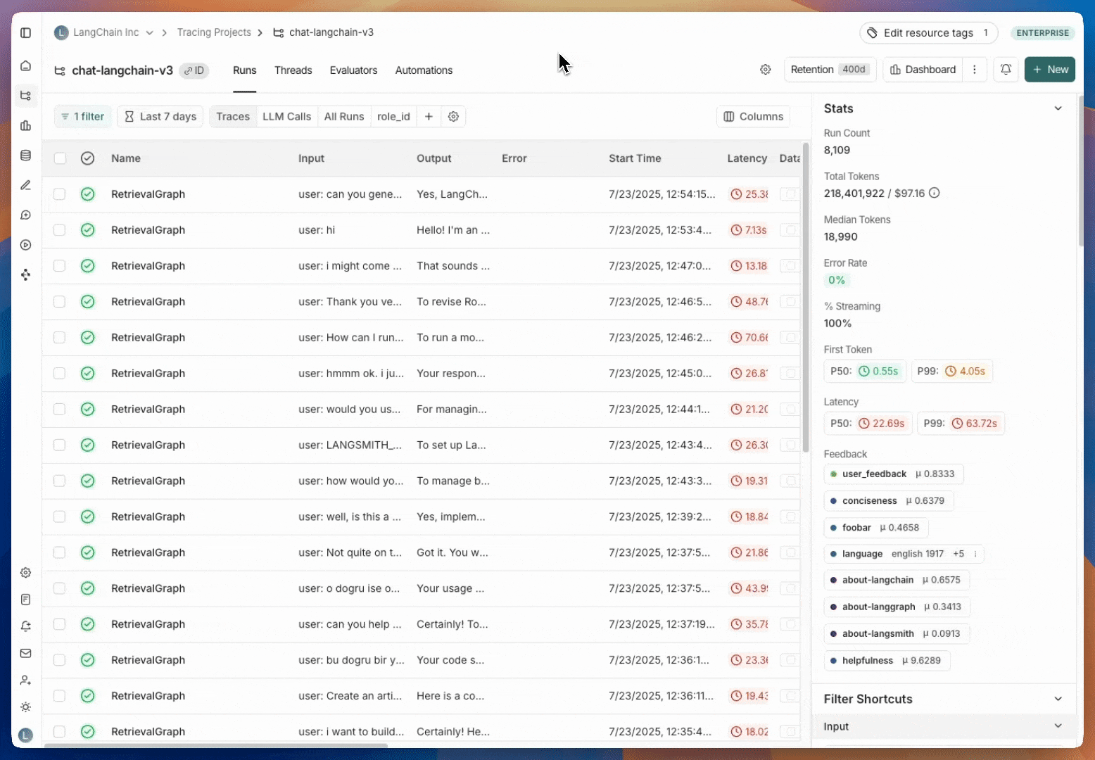 • Send 10% of all traces to an annotation queue for human review to spot check for issues